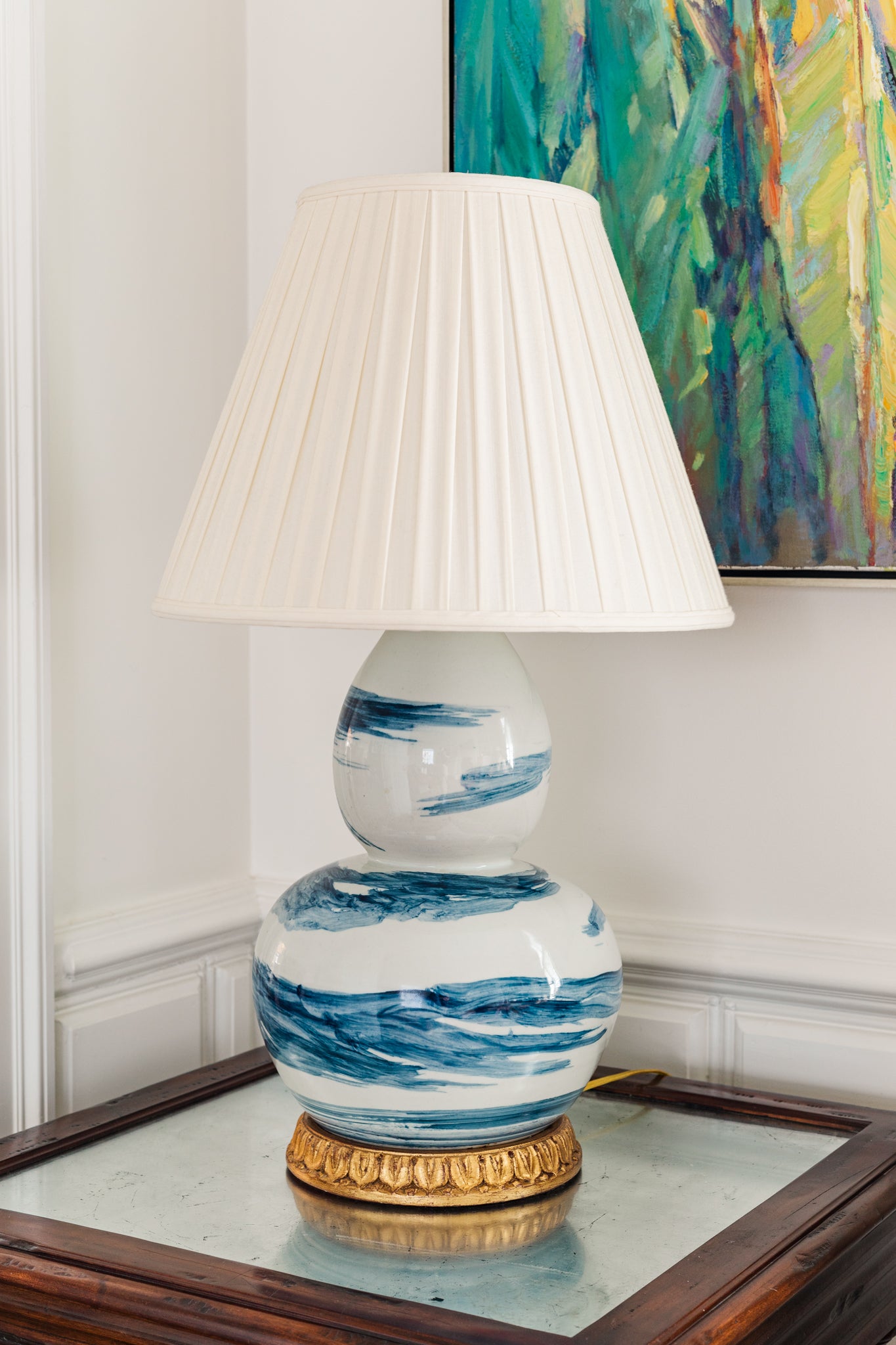 Uninhibited brushstrokes bring a casual elegance to this classically shaped double gourd ceramic lamp. Generously sized, it’s a perfect to invigorate a desk in a home office or side table in a living room. It melds easily into any style, thanks to the simplicity of the design.
