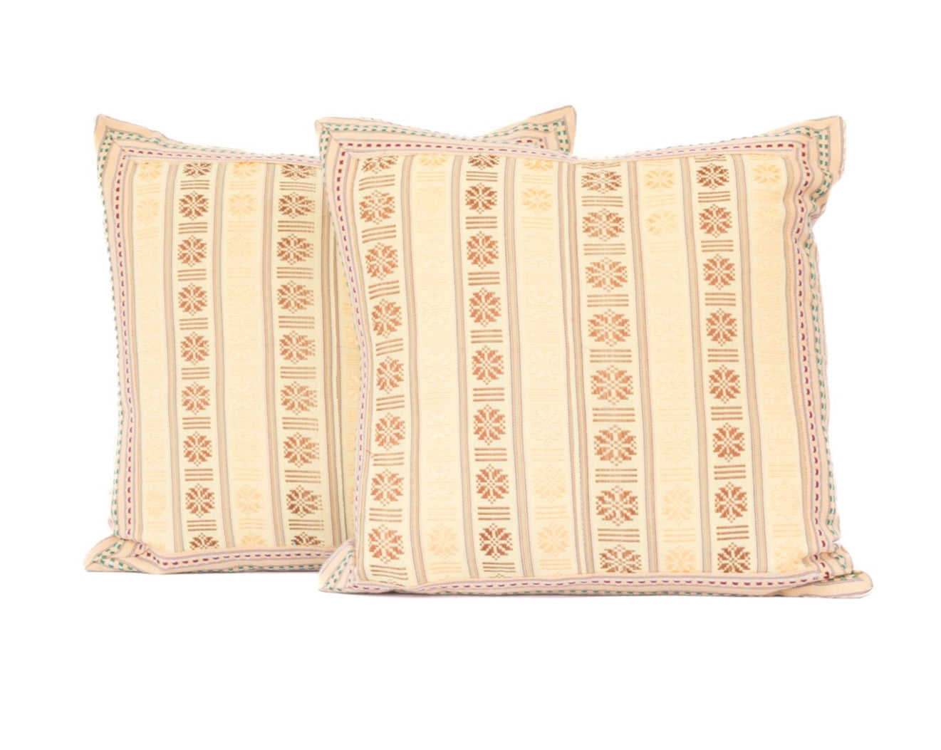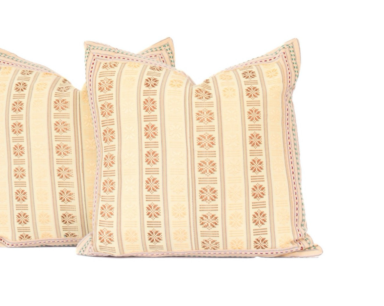 One-of-a-kind Hand-loomed Cham textile fronts and linen backs.