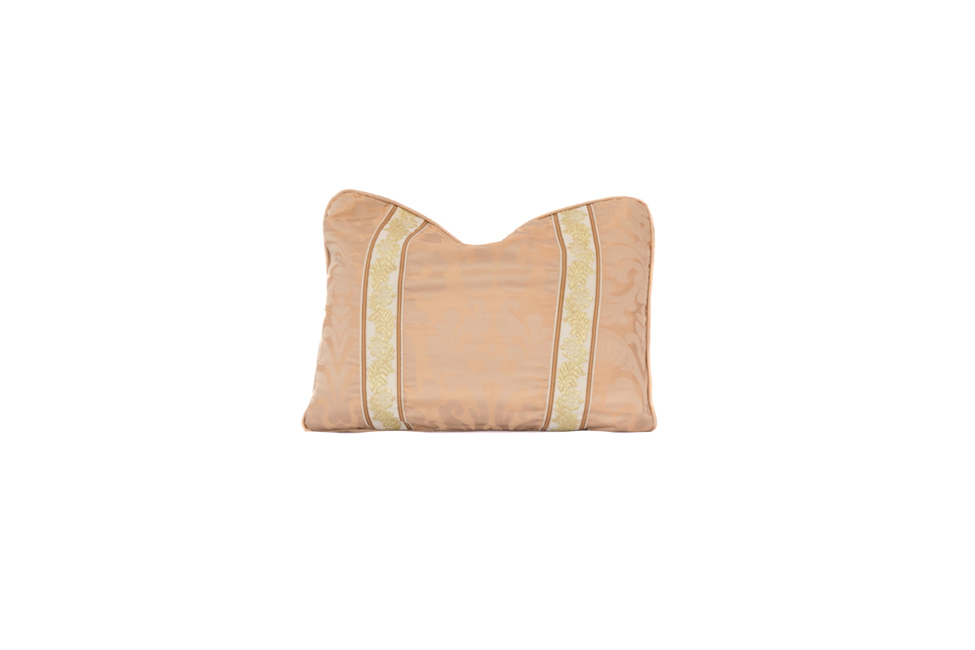 This pillow is a pure silk damask with floral tape trim detailing. The pillow inserts are feather.