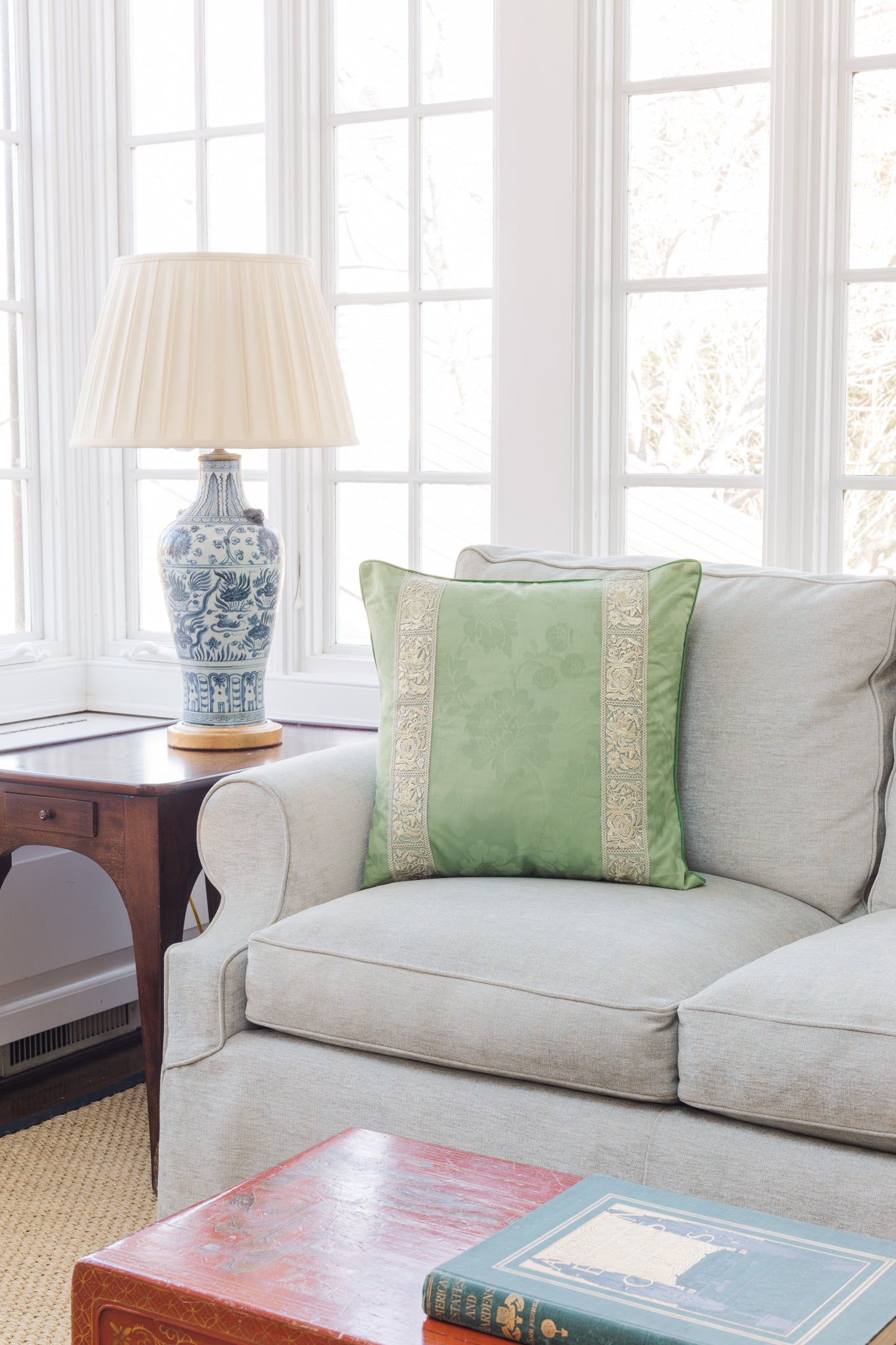 Emerald Green Damask Pillow with Gilt Trim and Gorgeous Green Silk Back. This vibrant, luxurious pillows are must have for any home! The trim is really rich and dramatic. The 100% green silk backs are just as gorgeous are the woven damask. The pillow inserts are feather but can changed to synthetic down.