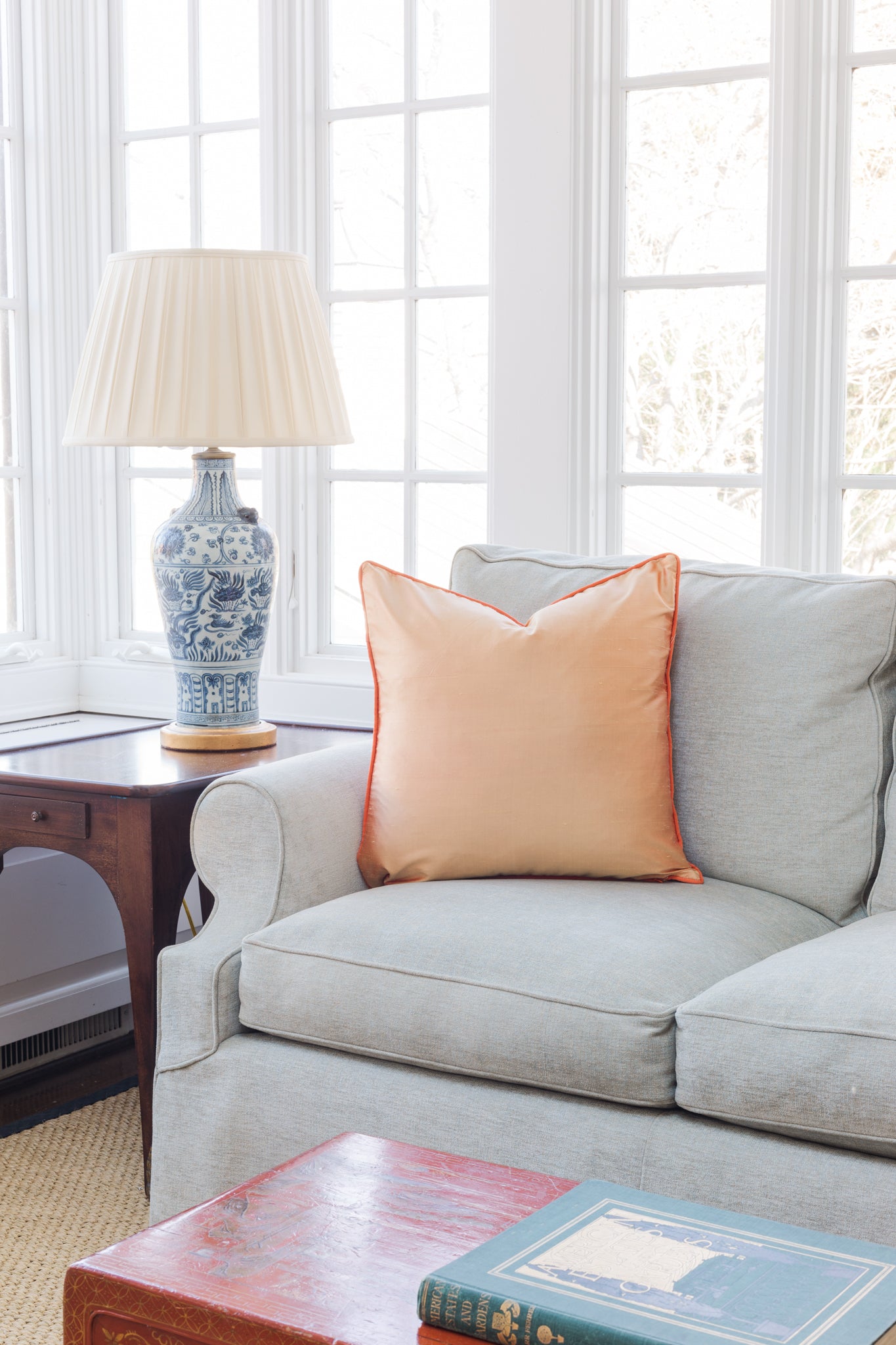 This vibrant, luxurious pillows are must have for any home! The trim is really rich and dramatic. The 100% silk backs are just as gorgeous are the woven damask. The pillow inserts are feather.