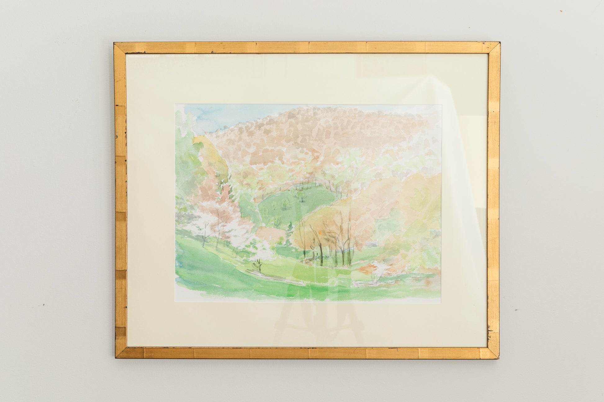 Gold Leaf Frame, Ecru Matte Vintage Watercolor. This is a beautiful and soft landscape.