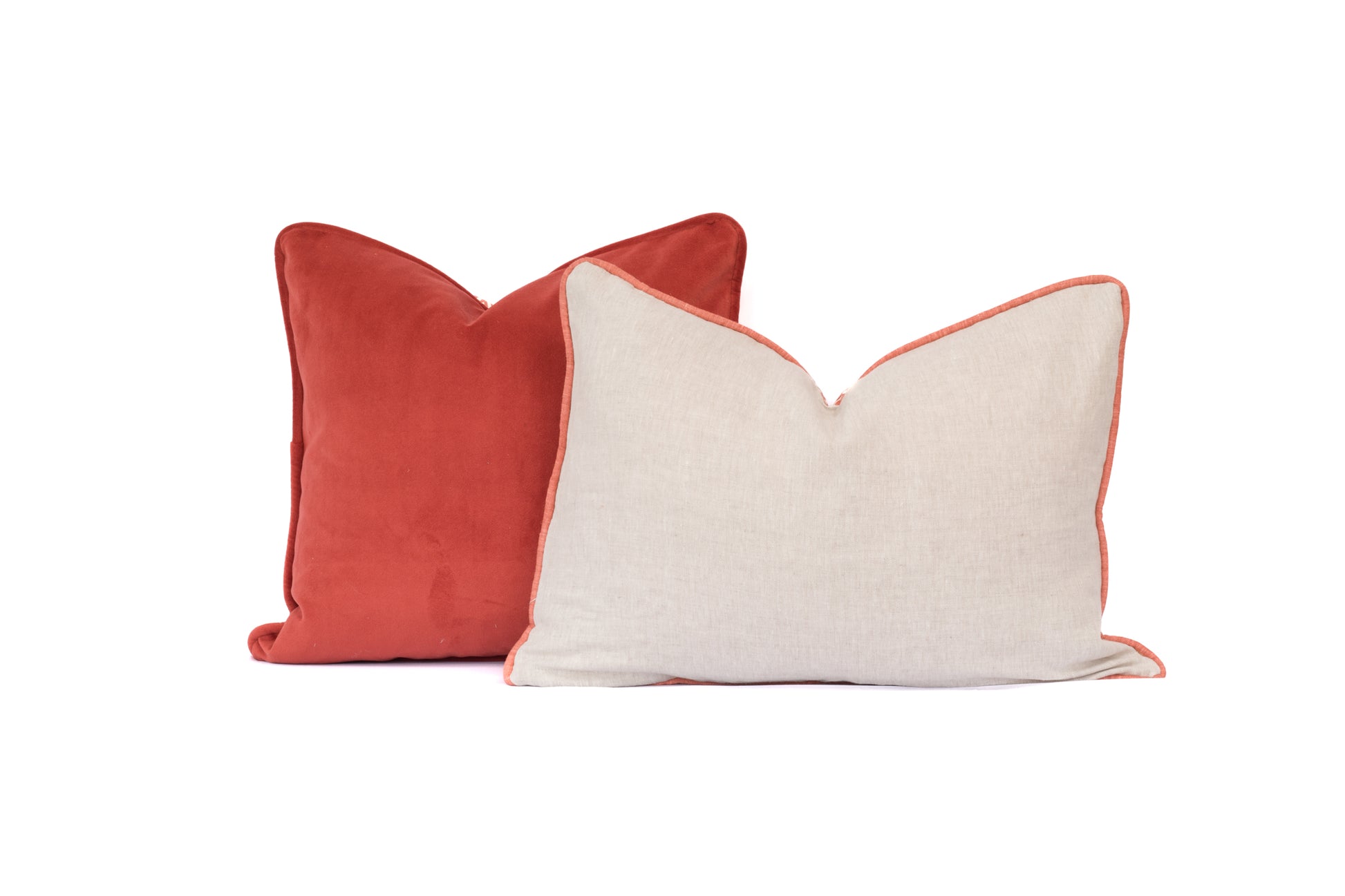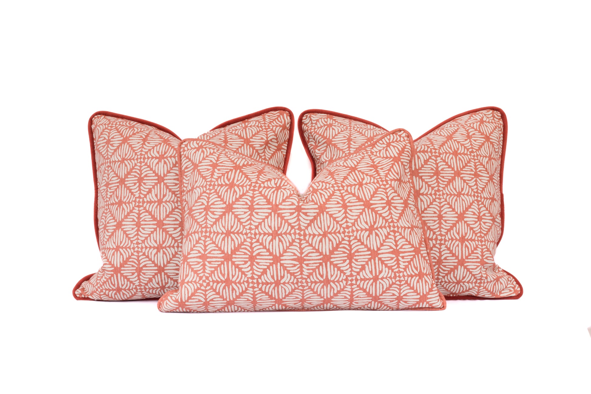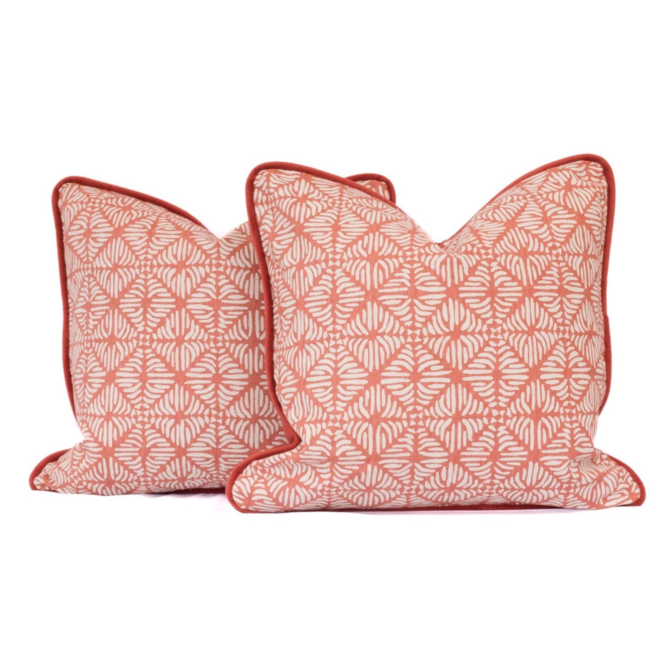 Peter Fasano Coral 22" Square Pillow with Velvet Back and Welts. Feather inserts included.