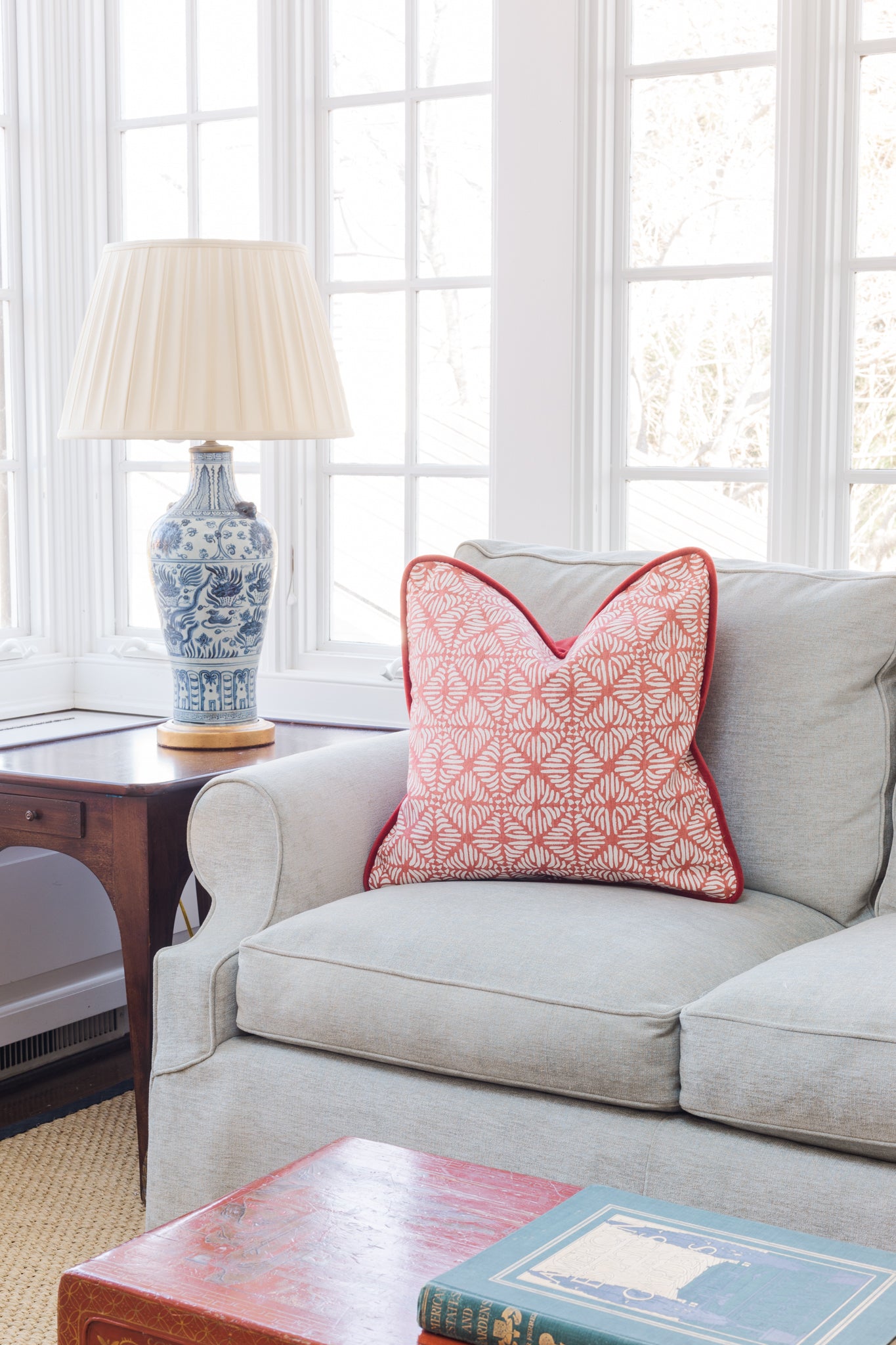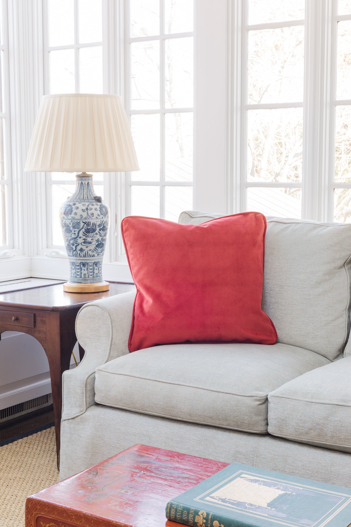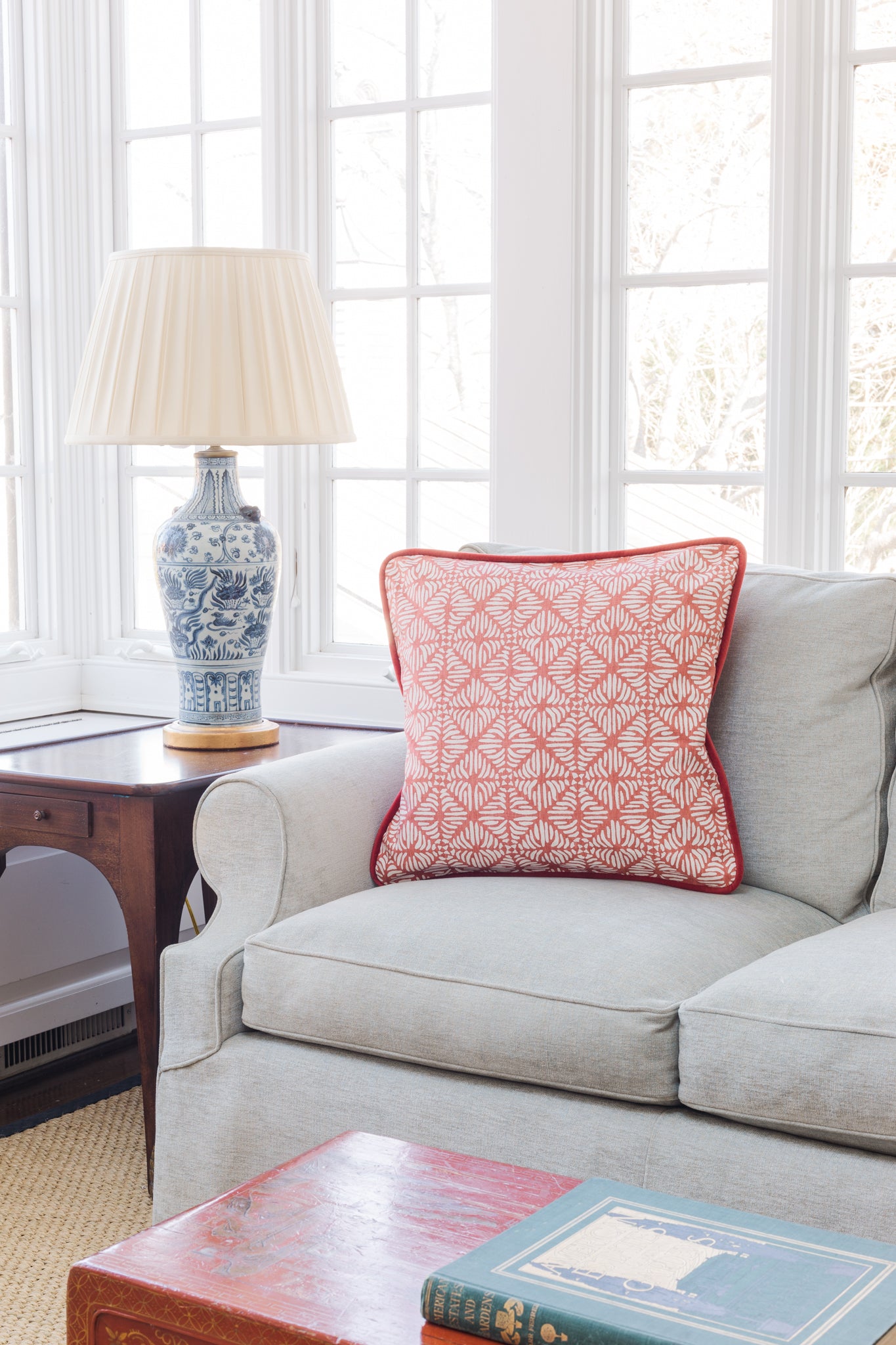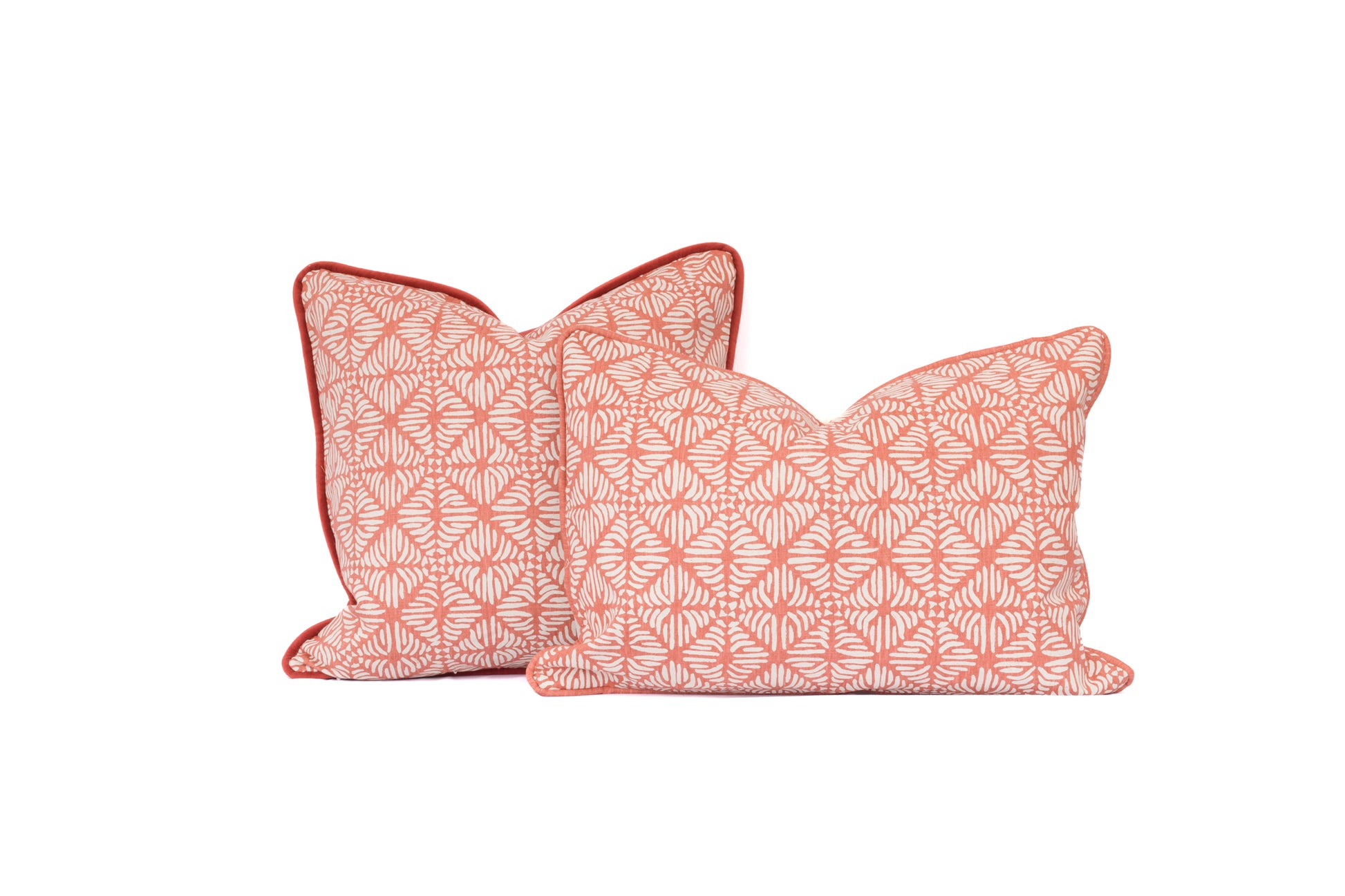 Peter Fasano Coral 22" Square Pillow with Velvet Back and Welts. Feather inserts included.