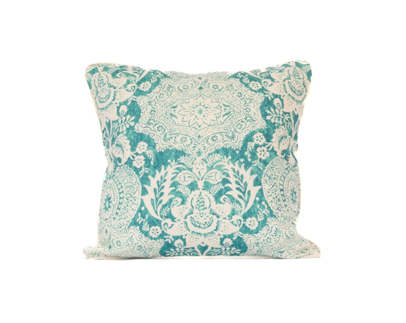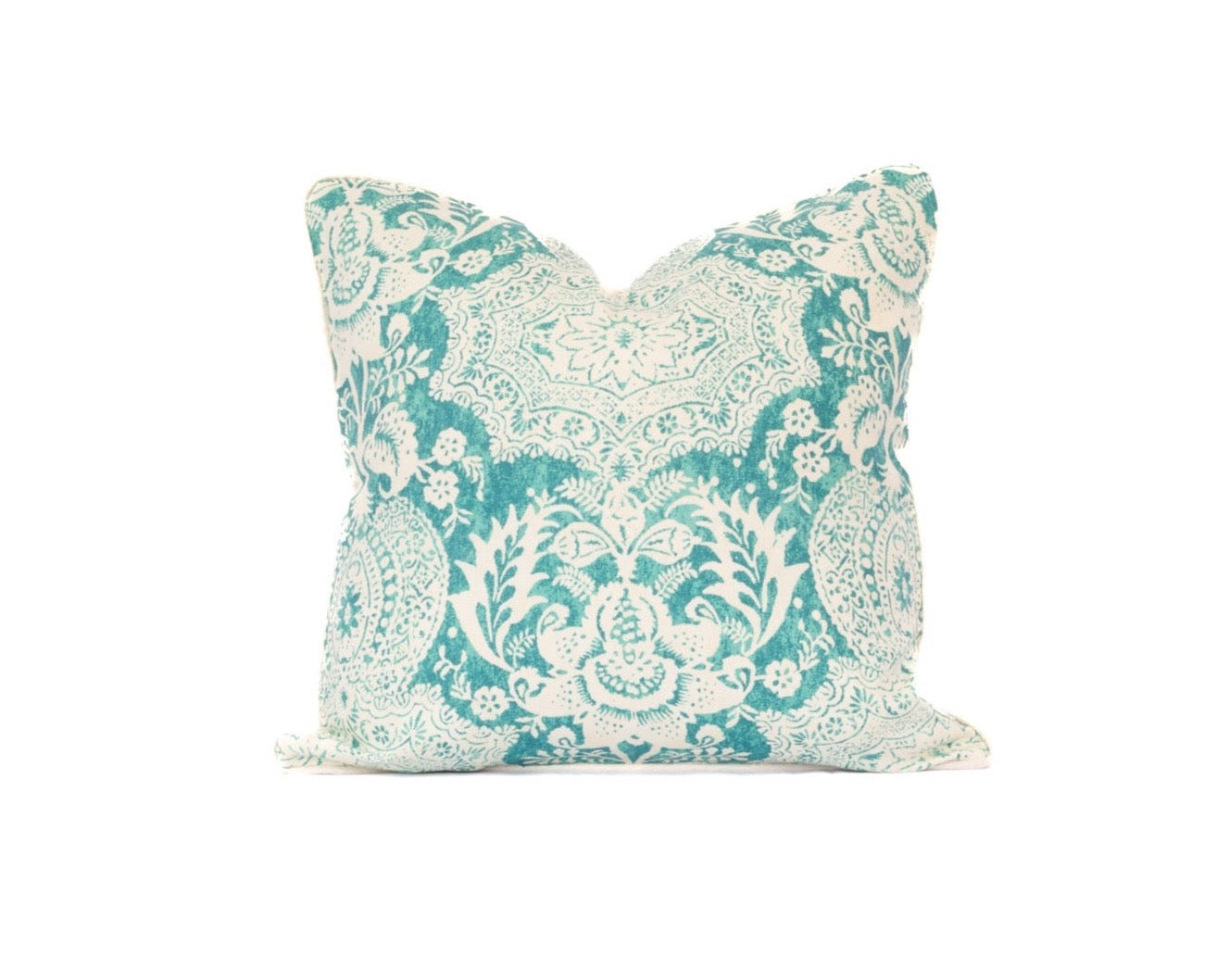Turquoise Printed Linen Pillow 22" with Feather Insert