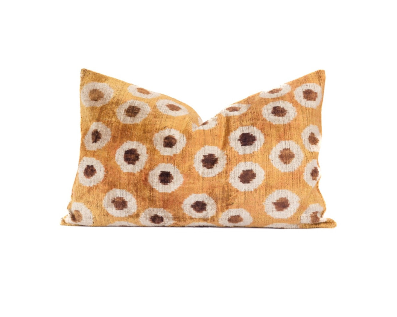 Gold Pattern Velvet Lumbar Pillow with Feather Insert