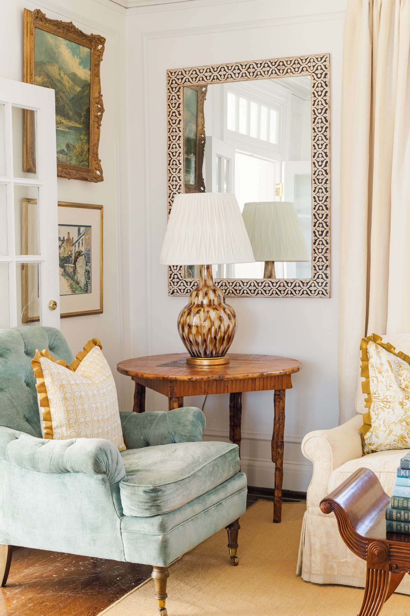 This lamp’s one-of-a-kind glaze takes inspiration from traditional sancai or tri-colored glazes. Since sancai glazes were prone to running during the firing process, colors often mix together to create an effect similar to the one achieved here.
