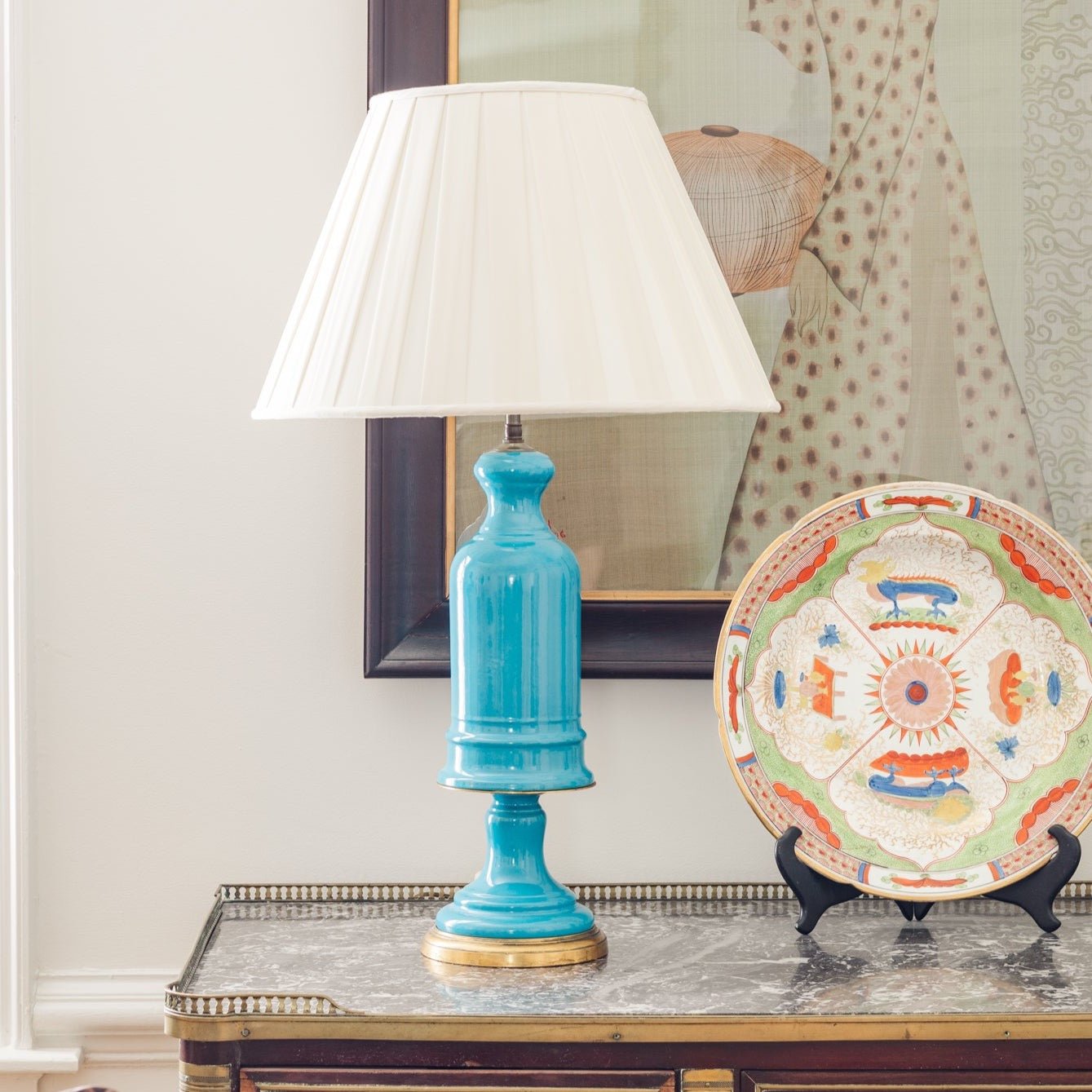 Pair of Lamps in Robin's Egg Blue with Gold Water Gilt Bases 30" Ht.