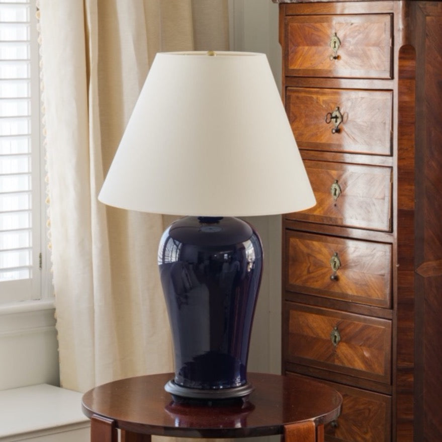 Cobalt Blue Lamp with Shade. This is one of a pair that was purchased from Harrod's in London.