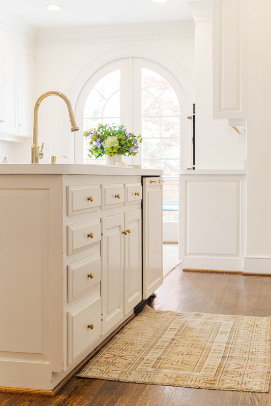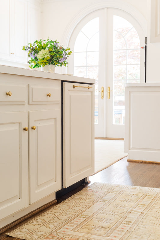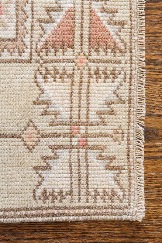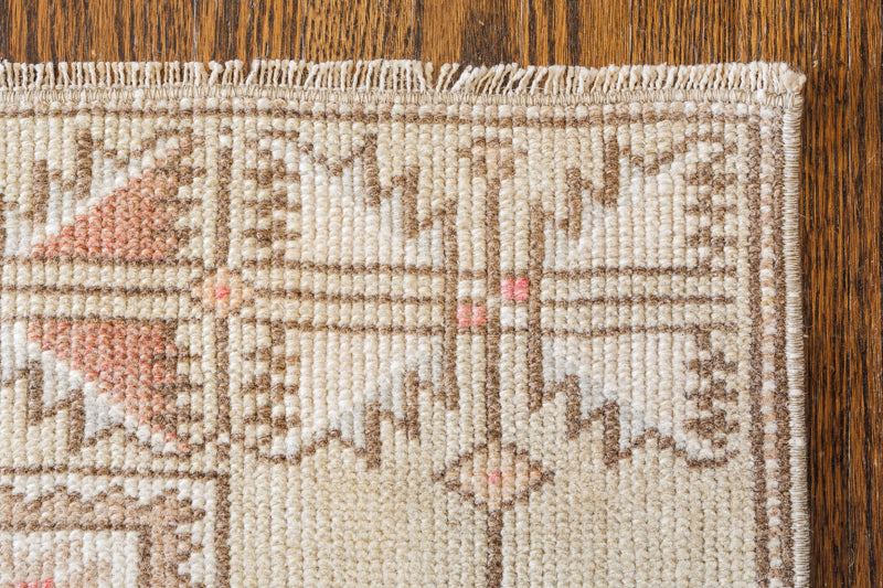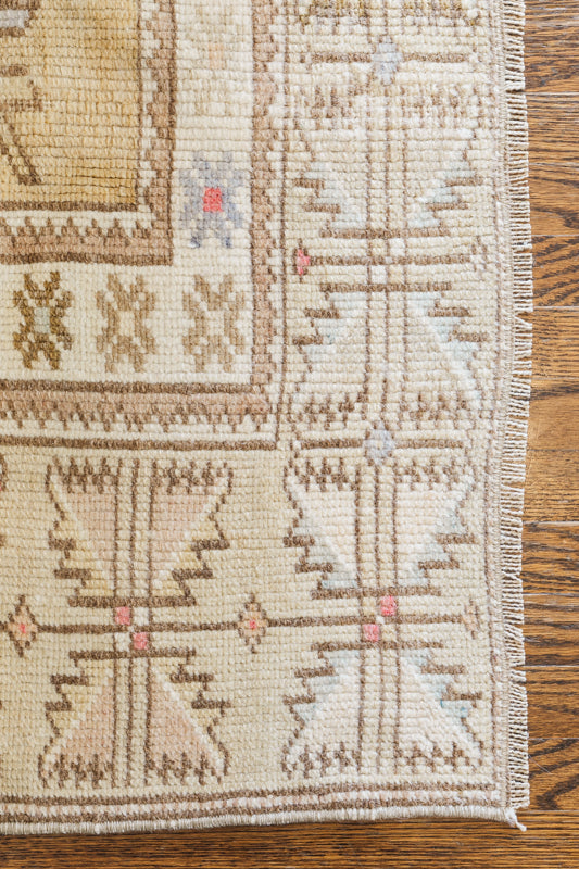 Vintage Turkish Rug (Tan, Pink, and Blue)